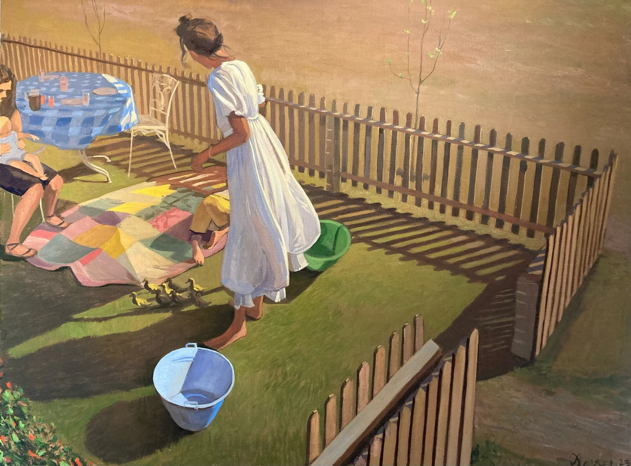 Little Lighthouse Farm is home to Island artist Max Decker. In his work, he captures scenes from everyday family life on the homestead. His work can be found lining the walls of our home, giving you the sense that you might have just stepped into one of his paintings when you come in.